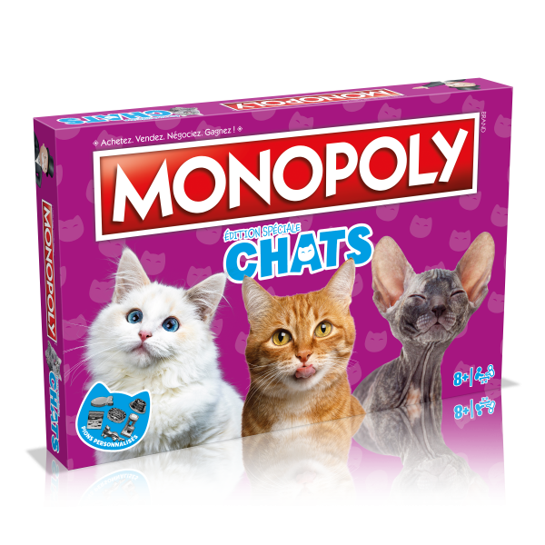 - Hasbro vous propose une nouvelle édition passionnante du jeu de société préféré du monde entier : le Monopoly Chats ! UN JEU PARFAIT POUR TOUS LES AMOUREUX DES CHATS !
